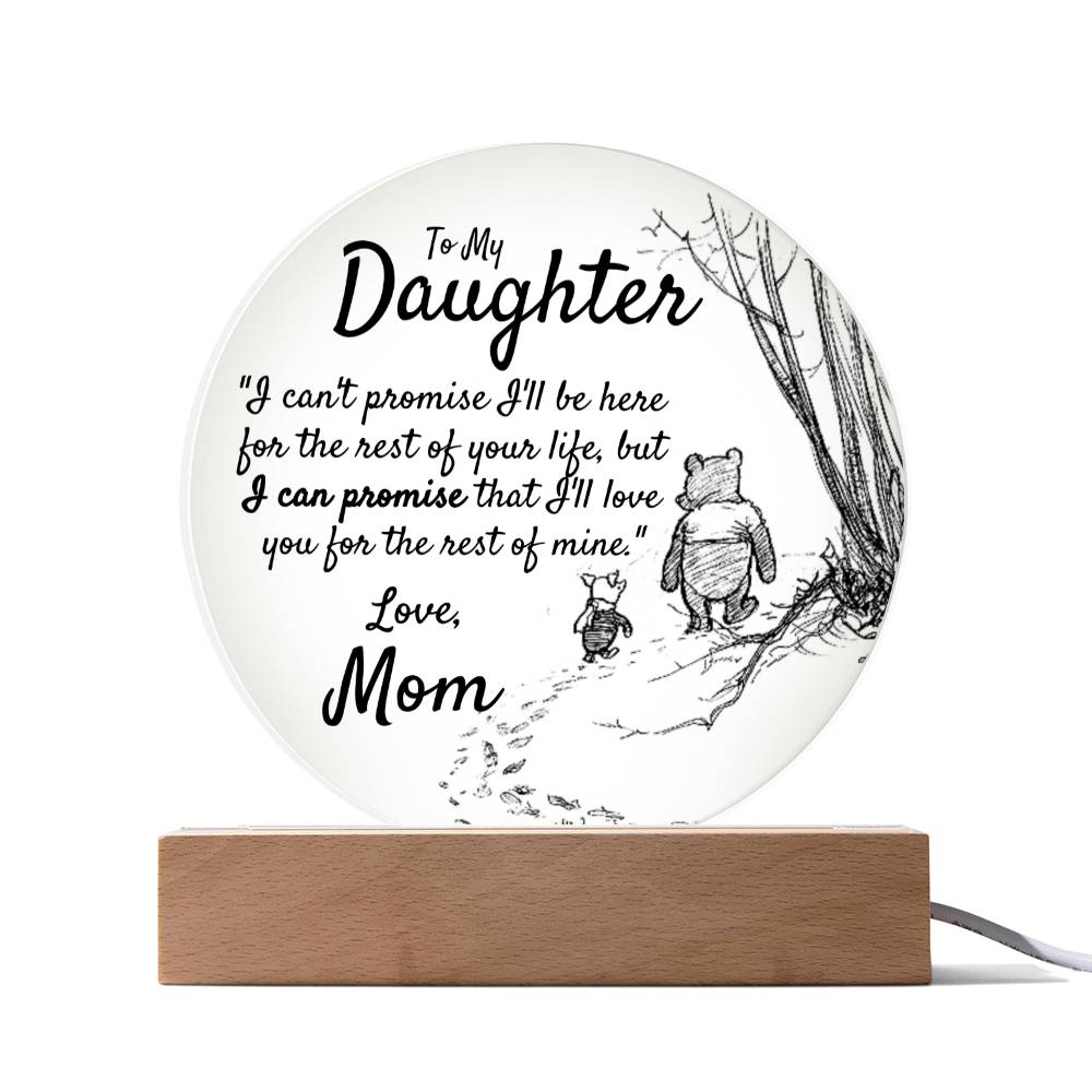 Message Reads: To My Daughter - "I can't promise I'll be here for the rest of your life, but I can promise that I'll love you for the rest of mine." Love, Mom